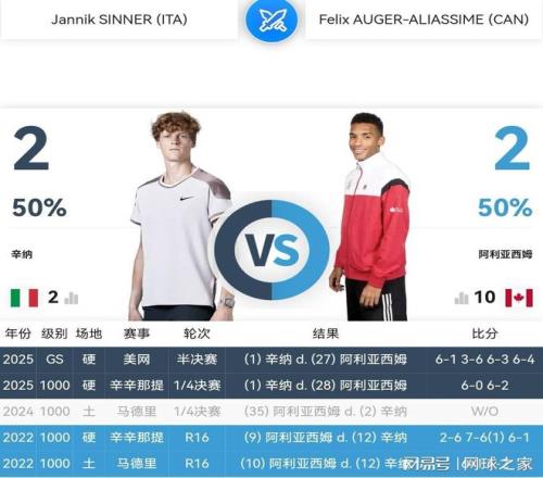 今年与辛纳交锋两次(辛辛那提1/4决赛和美网半决赛),虽然阿利亚西姆连败两场,但是肉眼可见的,阿利亚西姆越打越好了,这从美网半决赛曾经赢了辛纳一盘而得到充分的证明。阿利亚西姆发球优秀,正手进攻突出,速度奇快,特别擅长室内硬地作战(职业生涯八个冠军中的七个来自室内硬地赛场,其室内硬地战力可见一斑),今晚完全可以与辛纳一战,重现当年00后选手领头羊的风采。
