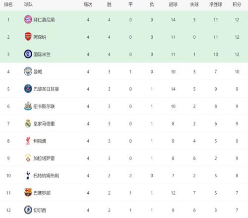 截至目前,欧冠前4轮已经全部踢完,英超整体表现非常强势。在积分榜上,阿森纳、曼城、纽卡斯尔和利物浦4支球队位居前八,此外热刺排名第10,切尔西位居第12,这2队和前八球队的差距并不大。本赛季,英超6队出战欧冠,随时可能全部出线。